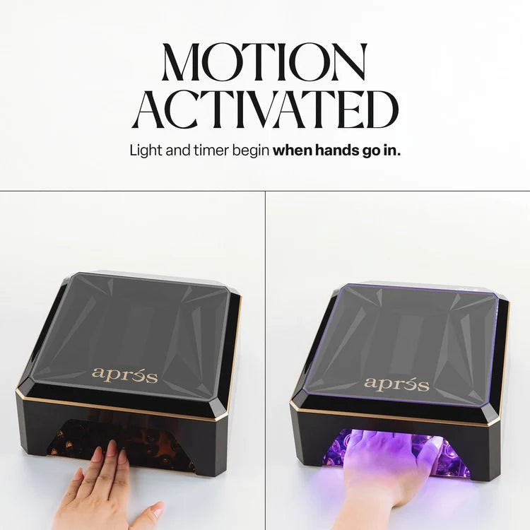 To ensure the gel is properly cured, place the hand into the LED lamp by following the guides on the button nail plate. The LED lights will be automatically activated after the hand is placed inside. To prolong the time, simply put your hand into the lamp again.